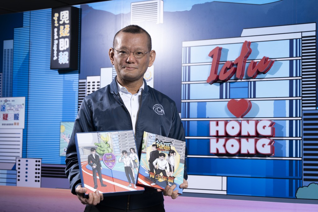 ▲跨部门反恐专责组高级警司梁伟基指,今次首度联同 “一国两制研究中心”推出此套反恐漫画书及教学套装,希望提倡“全民反恐”,携手共创“安全社区”。