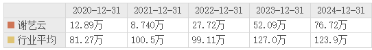 副总经理谢艺云2024的薪酬为76.72万元,同比增加47.28%,涨薪24.63万元,其薪酬水平要高于两位副董事长。