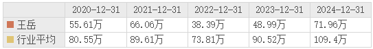 副董事长王岳2024年的薪酬为71.96万元,同比增加46.89%,涨薪22.97万元。