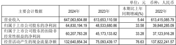 年报显示,2024年惠泉啤酒营业收入为6.47亿元,实现5.44%的增长,同时归母净利润为6483.02万元,增涨33.58%。