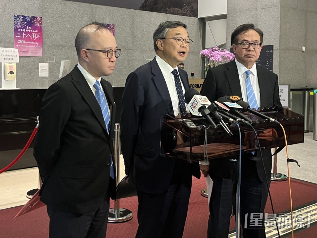 ▲(中)张宇人强调有关消费劵的建议只适用于香港居民,移民外地的人并不适用。林彦汛摄