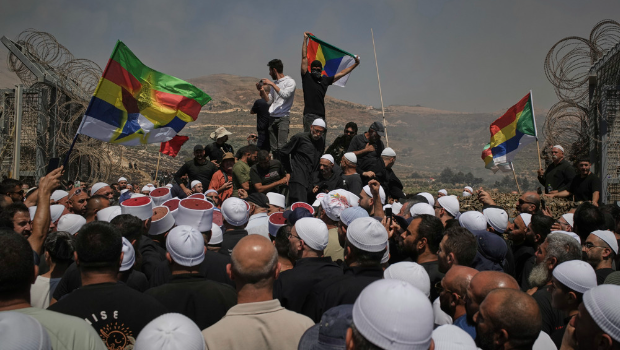 ▲叙利亚和以色列的德鲁兹人,在以色列控制的戈兰高地的以叙边境抗议。(图/美联社)