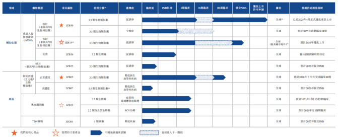 截至2025年6月20日,JZB05已完成与原研药(艾力雅®)“头对头”对比的I期临床研究,并已进入进一步对比的III期临床研究。公司预期将于2026年下半年完成III期临床研究,并于同年提交NDA上市批准。
