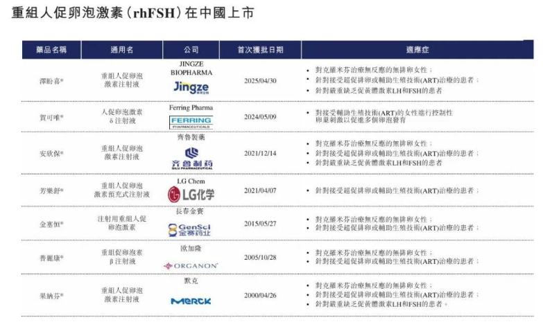 公司方面称,JZB30的主要对标产品为进口产品粉针剂型果纳芬®,后者在2024年及2025年第一季度均为全球促排卵市场占有率最高的促排卵药物。
