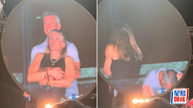 7月16日晚,Coldplay“Music of the Spheres世界巡回演唱会”在吉列体育场举行,期间“亲密镜头”捕捉到拜伦与卡博特拥抱的画面。拜伦双臂环绕卡博特,两人笑容灿烂,但发现自己出现在大萤幕后,拜伦迅速蹲下,卡博特则掩面,显得慌乱。主唱克里斯·马丁(Chris Martin)当场调侃:“哦,这是什么?他们要嘛在搞外遇,要嘛就是太害羞了!”随后补充:“希望我们没做错什么。”观众哄笑,场面尴尬。