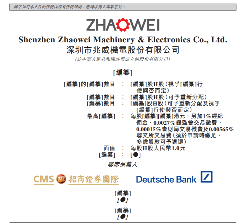 近日,据港交所,深圳市兆威机电股份有限公司(以下简称“兆威机电”)向港交所提交上市申请书,招商证券、德意志证券为联席保荐人。