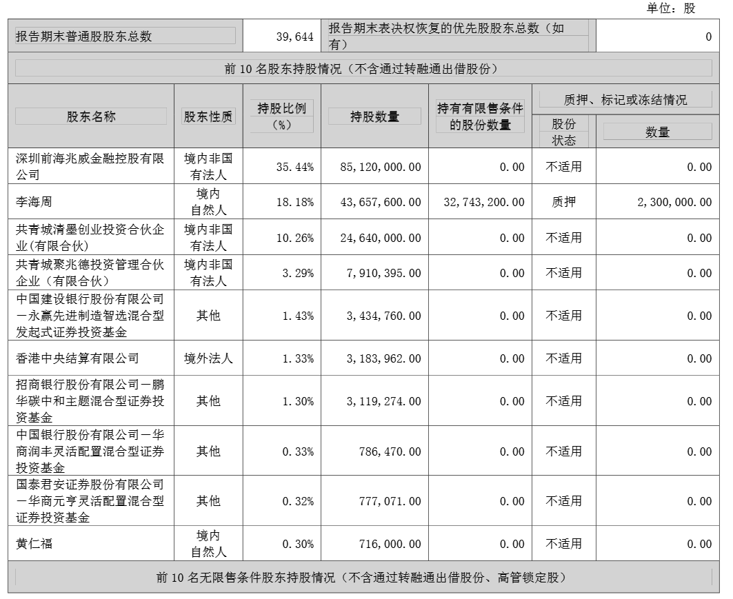据兆威机电2025年一季度报,截至2025年3月31日,兆威机电由李海周、谢燕玲夫妇全资持有的深圳前海兆威金融控股有限公司(以下称“兆威金融”)、共青城清墨创业投资合伙企业(有限合伙)(以下称“清墨投资”)各持股35.44%、10.26%,由李海周直接持股18.18%,由聚兆德持股3.29%,由中国建设银行股份有限公司-永赢先进制造智选混合型发起式证券投资基金持股1.43%,由香港中央结算有限公司持股1.33%,由招商银行股份有限公司-鹏华碳中和主题混合型证券投资基金持股1.3%,由中国银行股份有限公司-华商润丰灵活配置混合型证券投资基金持股0.33%,由国泰君安证券股份有限公司-华商元亨灵活配置混合型证券投资基金持股0.32%,由黄仁福持股0.3%。