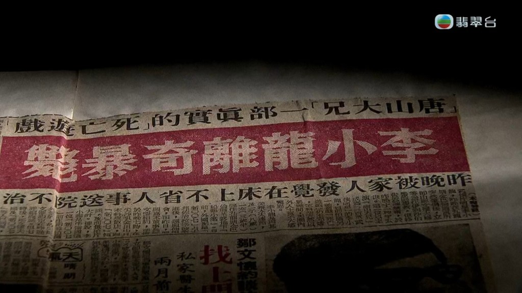 TVB全新节目《真相猜‧情‧寻》(21日)晚首播,由方东升、黄晓莹、李嘉嘉担任主持,首集就拆解52年前一代武打巨星李小龙离世之谜。李小龙于1973年7月20日离世,终年32岁,由于李小龙死得突然,而且当时正值壮年,多年来坊间流传李小龙非死于自然,今集《真相猜‧情‧寻》就找出当年的人与事,尝试拆解李小龙死亡真相。