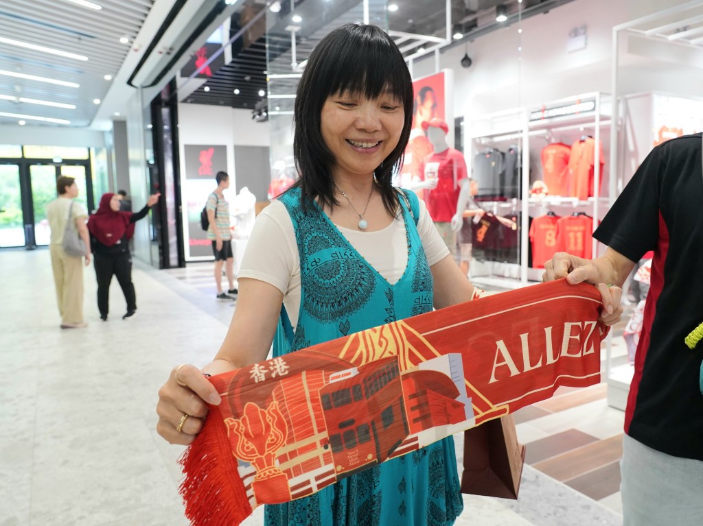 黄女士与丈夫同为利物浦球迷,她指从高普(Jürgen Klopp)年代开始支持利物浦,今次训练和正式比赛都有购票入场。被问及最希望哪位球员入球,她则指沙拿和纽尼斯(Darwin Núñez),又笑言“边个入波都好,最好就赢几粒,大炒AC米兰”。为支持爱队,她亦购买了印有香港限定图案的围巾。