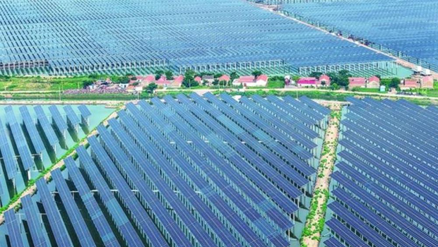 ▲中国绿色技术加速出海重塑全球能源格局。图为连云港三峡青口盐场渔光互补太阳能复合项目。(中新网╱连云港市人民政府网站)