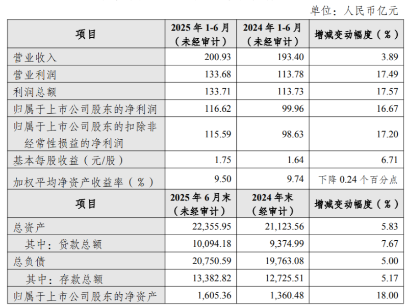 截至2025年6月末,公司总资产22,355.95亿元,较上年末增长5.83%;贷款总额10,094.18亿元,较上年末增长7.67%;存款总额13,382.82亿元,较上年末增长5.17%。
