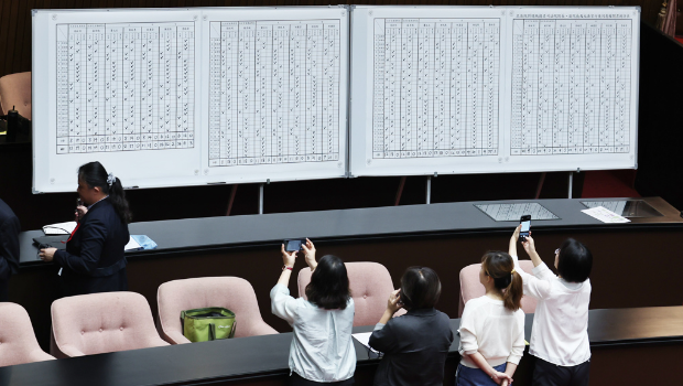 ▲“立法院”25日院会进行“大法官”人事同意权投票,开票结果,所有被提名人皆未过关。(中时新闻网)