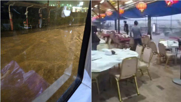 另外,西贡早前一度录得每小时约110公里的猛烈阵风。有当区街坊在社交平台发帖,可见狂风暴雨前天色黑云压顶,其后雨势风势突然来袭,闪电交加。途人纷纷躲避屋簷下,海鲜档户外餐枱一片凌乱,犹如末日来临。亦有道路水浸,汽车需要涉水而过。