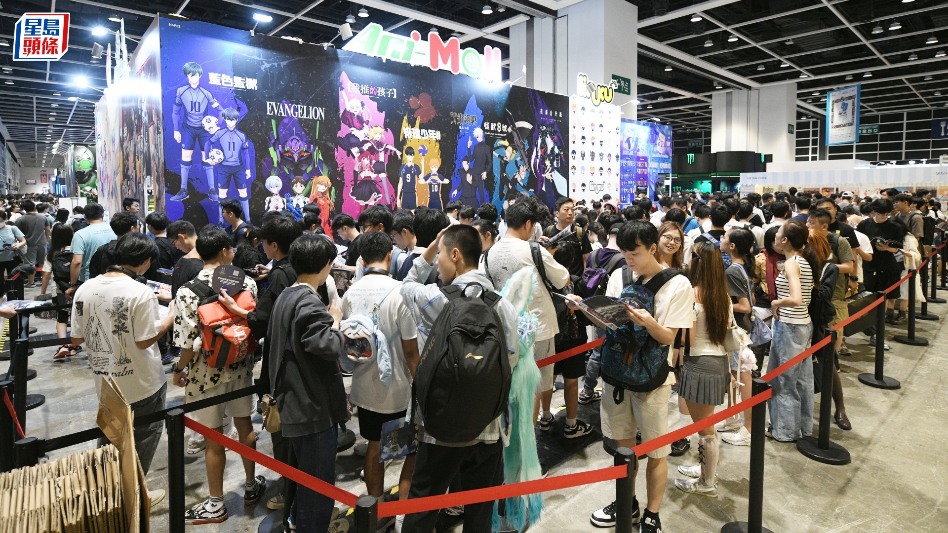 一连五日的动漫电玩节于湾仔会展举行,今日(27日)踏入第3日,有大批市民趁周日假期入场,大约中午12时,场外人山人海。《星岛头条》记者现场所见,龙尾已延伸至附近鹰君中心,大会指入场时间约为1个小时,亦实施人流管制措施。有深圳动漫迷表示,于清晨8时已抵达落马洲港铁站,现场排队近一个半小时后才顺利入场,随即消费超过5000元人民币。