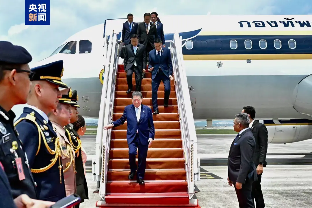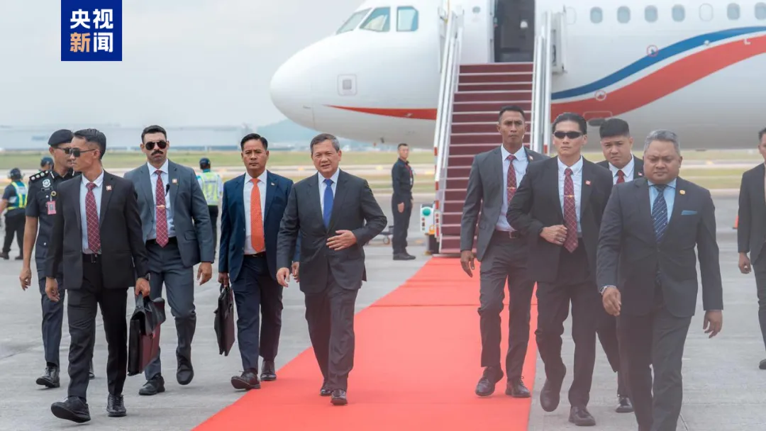 当地时间28日,泰国代理总理普坦、柬埔寨首相洪玛奈抵达马来西亚总理官邸。