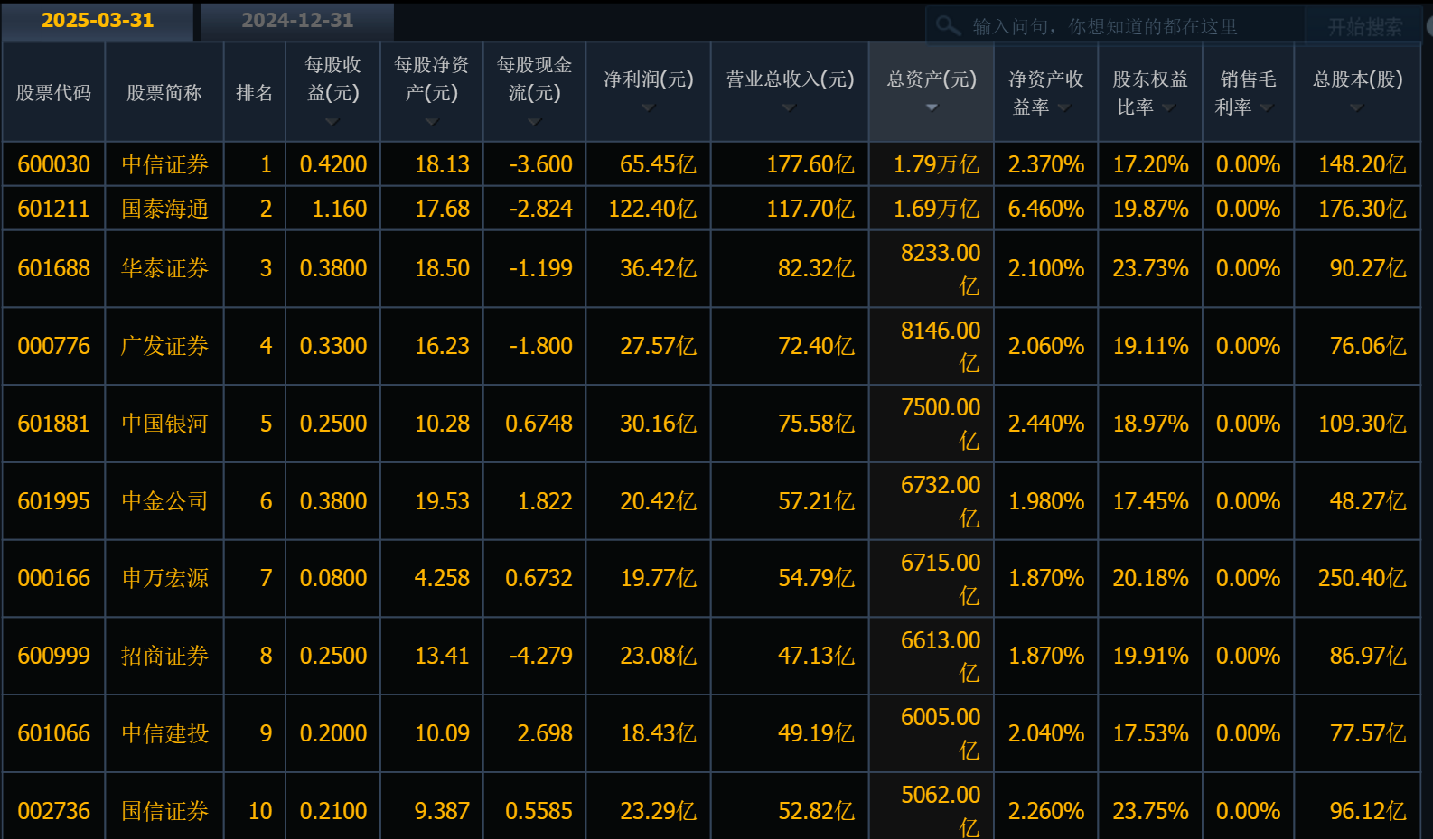 当前,中国证券行业正处于深度转型期,行业集中度持续提升。根据中国证券业协会数据,2024年,证券行业总资产达12.93万亿元,营收总额为4511.7亿元,但前十大券商占据约70%的营收份额。头部券商如中信证券、国泰海通、华泰证券等凭借资本优势主导市场,而中小券商则面临生存压力。