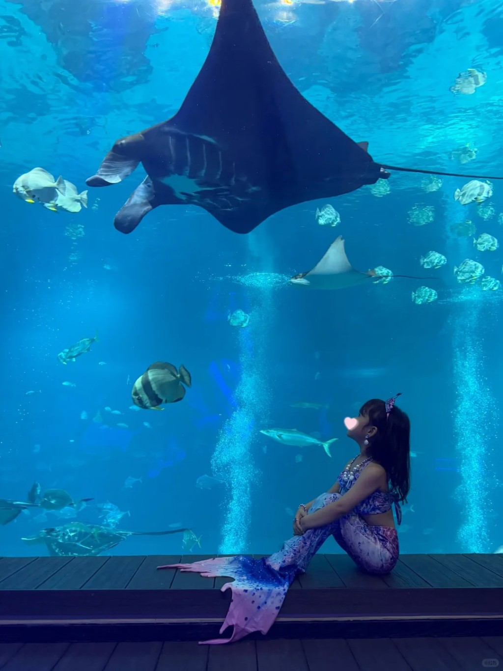 张馨月在女儿的小红书留言:“新加坡变身美人鱼,我的暑期旅行第一站新加坡,最近迷上了小美人鱼,爸爸帮我订了可以在房间看鱼的饭店,妈妈买了美人鱼的衣服,帮我实现了小小愿望”。照片中见到林峯囡囡Luna多度变装,坐在鱼缸前拍照,又换上美人鱼打扮落水玩。