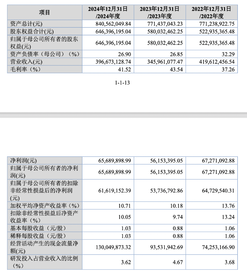 据招股书,2022年-2024年,里得科技实现营收分别为4.2亿元、3.46亿元、3.97亿元;归母净利润分别为6727.11万元、5615.34万元、6568.99万元。