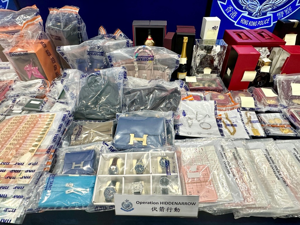 警方认为时机成熟,昨日(29日)展开代号为“伏箭”的拘捕行动,对港九新界多间公司及个人展开突击搜查,以涉嫌洗黑钱及串谋诈骗罪名拘捕共82人,分别为55男27女,年龄介乎19至78岁,其中一名44岁男子为该洗黑钱集团首脑,并有骨干成员包括家人及党羽。行动中总共冻结11.3亿港元,并检获约共826万港元现金以及价值超过700万证物,包括超过1,100枝酒、名贵手表、首饰、手袋、金器、茶叶及大量银行文件等等。行动仍然继续进行,警方不排除会有更多人被捕。
