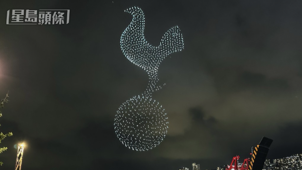 两支英超劲旅阿仙奴及热刺将于明日(31日)在启德体育园主场馆比赛,有无人机公司与热刺足球会(Tottenham Hotspur Football Club)合作,于今晚(30日)7时半在香港嘉里酒店正对的维多利亚港上空,举行长达20分钟的无人机汇演,以庆祝两支球队到访香港进行友谊赛。有不少球迷在现场观看和影相,期间不时出现欢呼声和掌声。