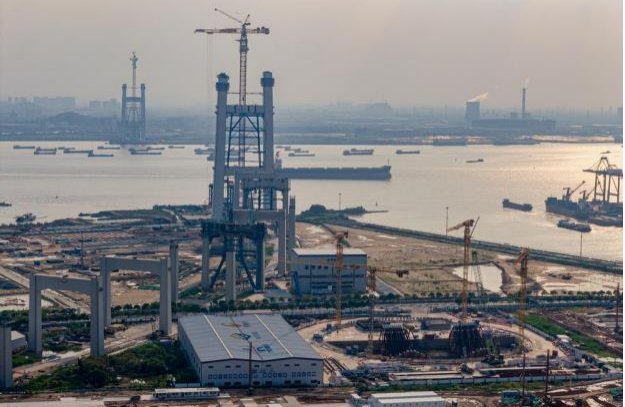 粤港澳大湾区重点工程狮子洋大桥主塔高度过半
