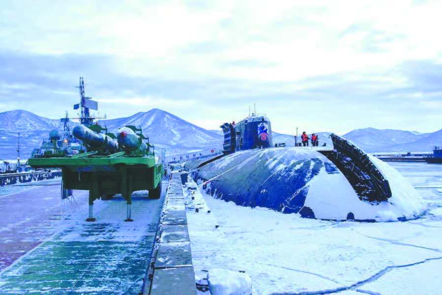 ▲停泊于雷巴奇核潜艇基地的俄海军核潜艇。