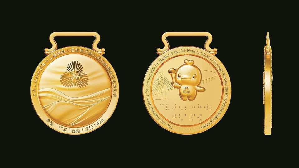 奖牌正面,精心镌刻的连绵海浪纹,象征着大海的广阔与包容,传递着残特奥会汇聚万众一心、众志成城的力量,更代表着运动员们破浪前行、永不言弃的意志与激情。