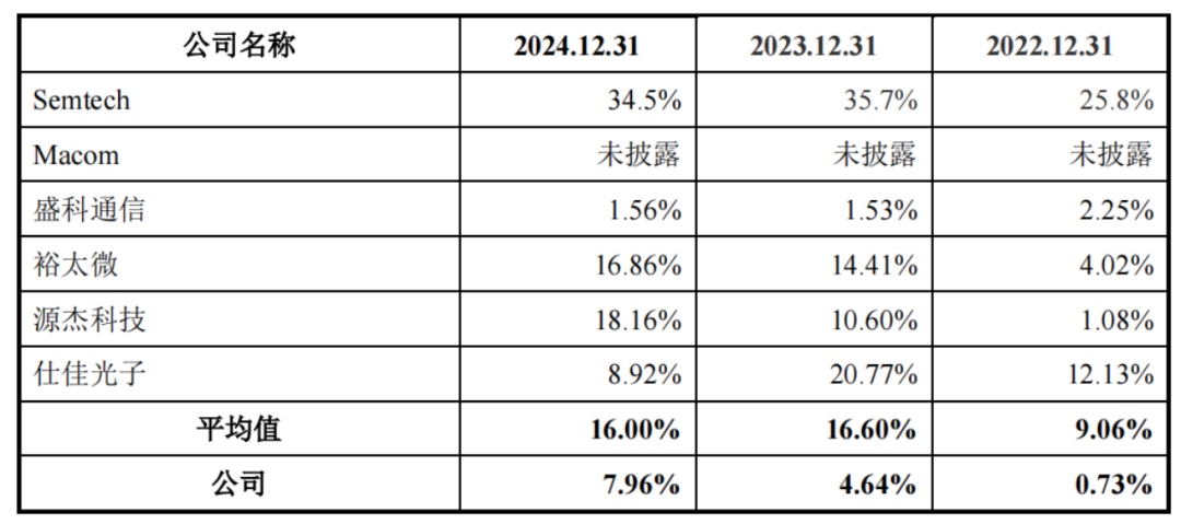 优迅股份的存货跌价计提比例不及同行一半,同期,同行业可比上市公司存货跌价计提比例均值分别为9.06%、16.6%、16%。