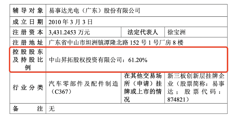 近日,易事达光电(广东)股份有限公司(以下简称“易事达”)启动IPO辅导,拟登陆北交所。