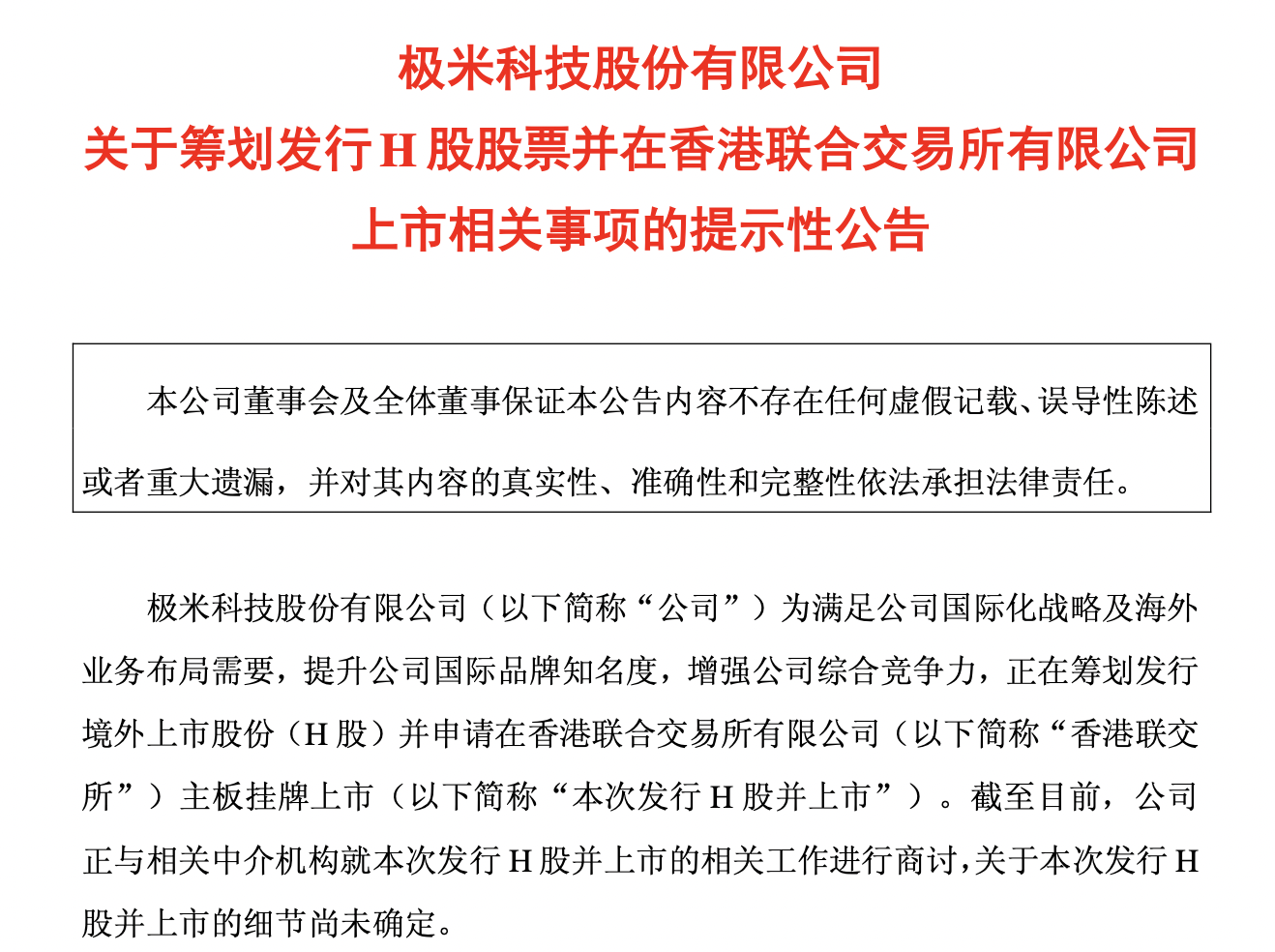 截至目前,公司正与相关中介机构就本次发行H股并上市的相关工作进行商讨,关于本次发行H股并上市的细节尚未确定。