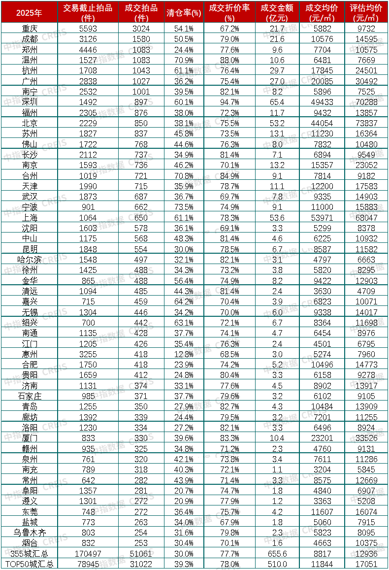 ▲表:2025、2024年TOP50城法拍住宅房源交易同比