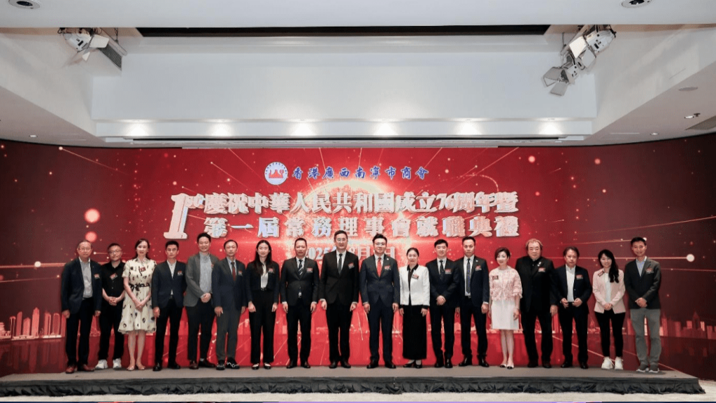 香港广西南宁市商会第一届常务理事会就职典礼暨晚宴昨晚(8日)举行。香港广西南宁市商会的成立标志着桂港经贸合作迈向新台阶,为两地企业参与西部通道建设及互补发展提供平台,对促进经济共赢与文化互通具有积极意义。