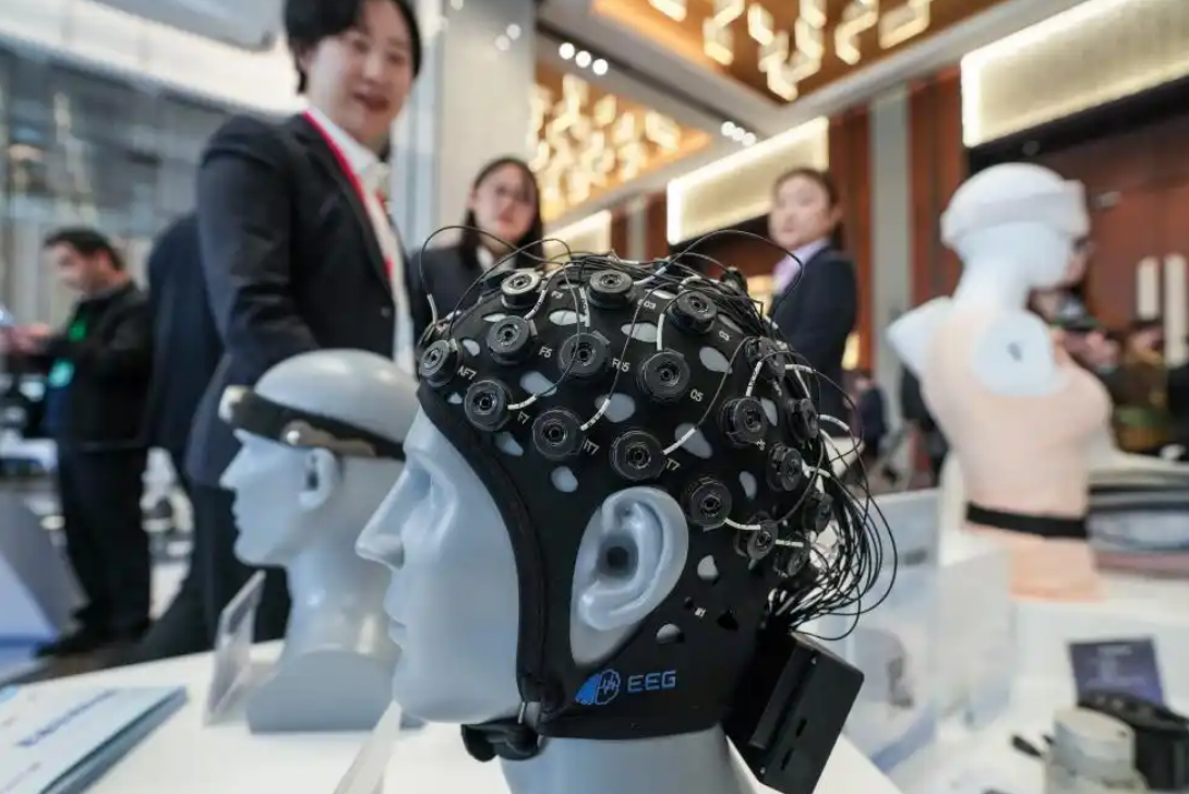 ▲2月14日,2025年苏州市“人工智能+”创新发展推进大会暨人工智能赋能新型工业化深度行(苏州站)活动现场展示的脑机接口智能装备。新华社