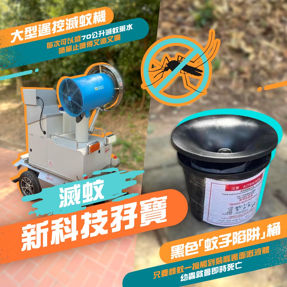为加强预防基孔肯雅热等蚊媒疾病,食环署近期引入的两款全新高科技灭蚊装备,包括大型遥控灭蚊机、新型捕蚊器,相信可以有效地进行大范围灭蚊。