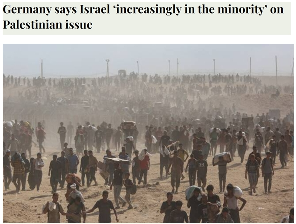 7月最后一天,德国外长瓦德富尔再次表示,随着加沙人道主义危机日益严峻,以色列在巴勒斯坦问题上“越来越处于少数”,在外交上“日渐孤立”。