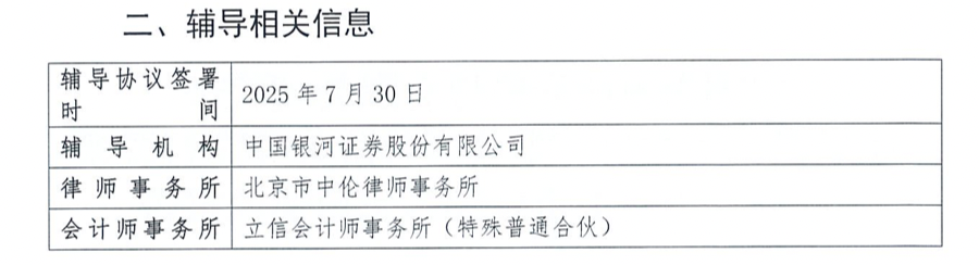 本次IPO的辅导机构为中国银河证券股份有限公司,律师事务所为北京市中伦律师事务所,会计师事务所为立信会计师事务所(特殊普通合伙)。