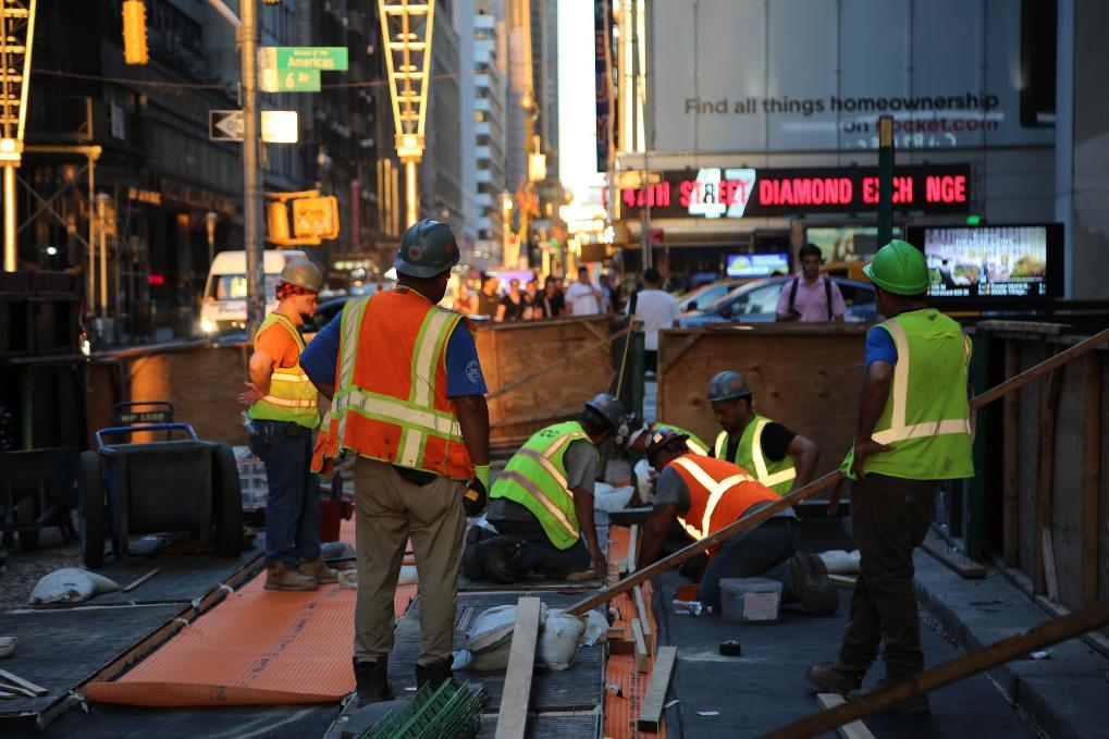 ▲6月24日,建筑工人在美国纽约曼哈顿街头工作。新华社