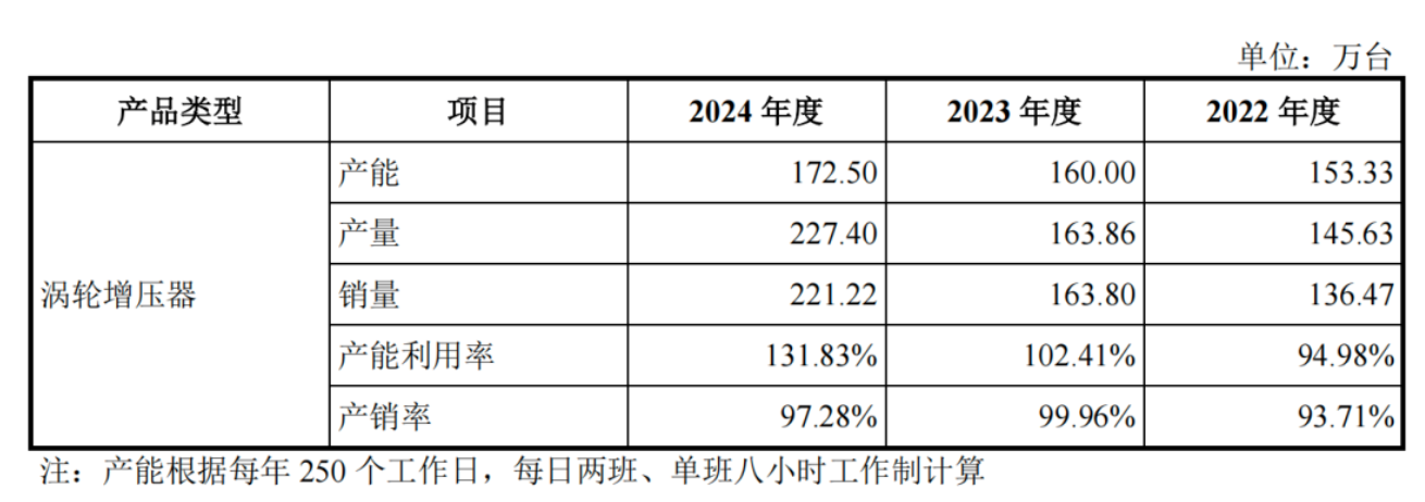 丰沃股份表示,报告期内涡轮增压器的产能利用率持续升高,2024年达到131.83%,产销率也维持在97.28%的高位,产能不足已经成为制约公司扩大业务规模的重要瓶颈之一。公司亟需通过新建生产基地、生产线等方式增加产能,增强公司的盈利能力。但由于与主要客户未在合同中约定明确幅度的年降政策,期内涡轮增压器销售价格持续降低。从2022年的1021.54元/台,降至2024年的932.80元/台。