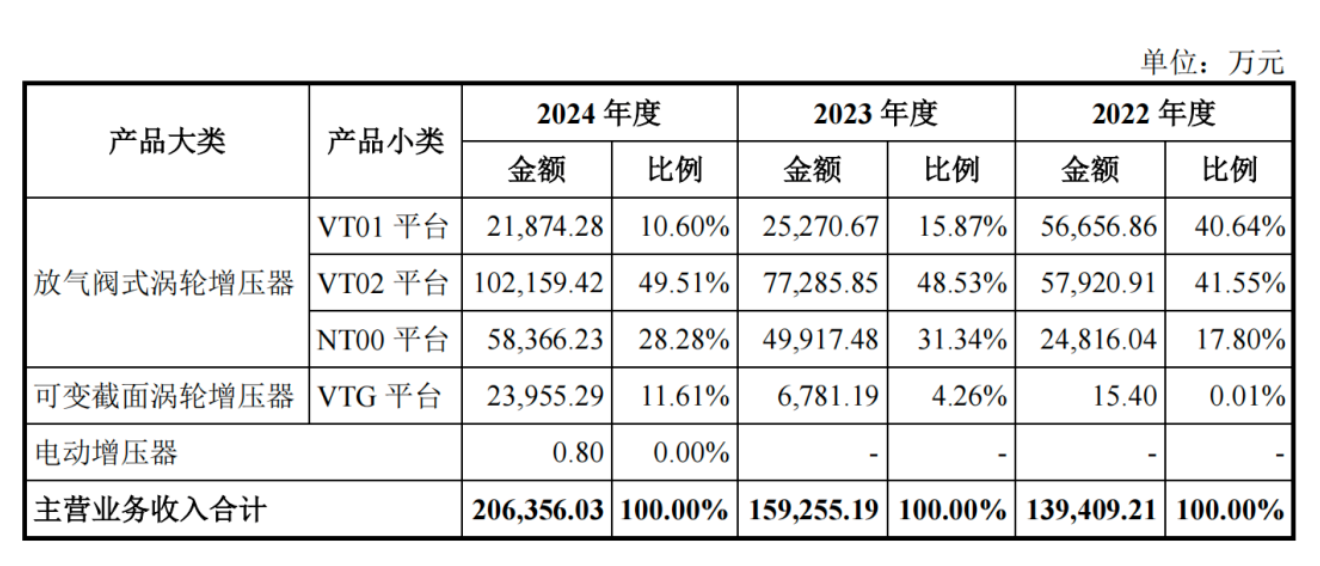 涡轮增压器产品同时是报告期内丰沃股份的重要收入来源。报告期内,丰沃股份有超过99%的收入来自涡轮增压器的销售,产品应用领域相对集中,业绩表现受燃油车及混动车下游市场发展影响显著。