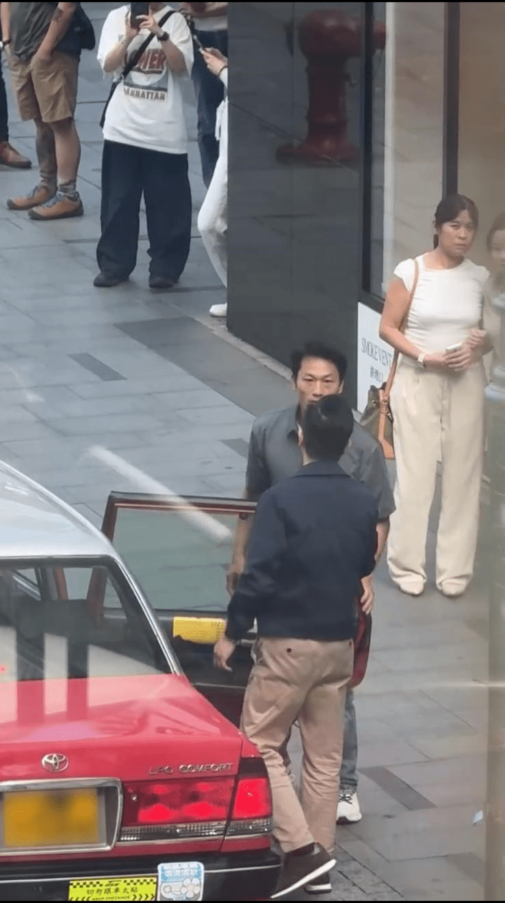 ▲张家辉准备上的士之际,一名穿灰色衫男子试图争的士。