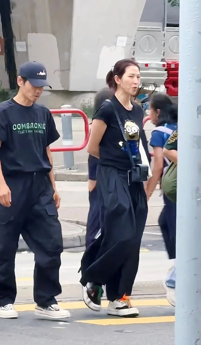 近日有网民更新小红书,指于香港野生捕获蔡少芬和张晋。 当时他们正在过马路,同行的还有一位穿绿色衫的中年女子。 身穿黑色卡通人物上衣的蔡少芬,当天十分精神容光焕发,扎起马尾显得十分年轻。 她跟友人行在前头彼此有讲有笑,而张晋就一言不发跟在老婆身后。
