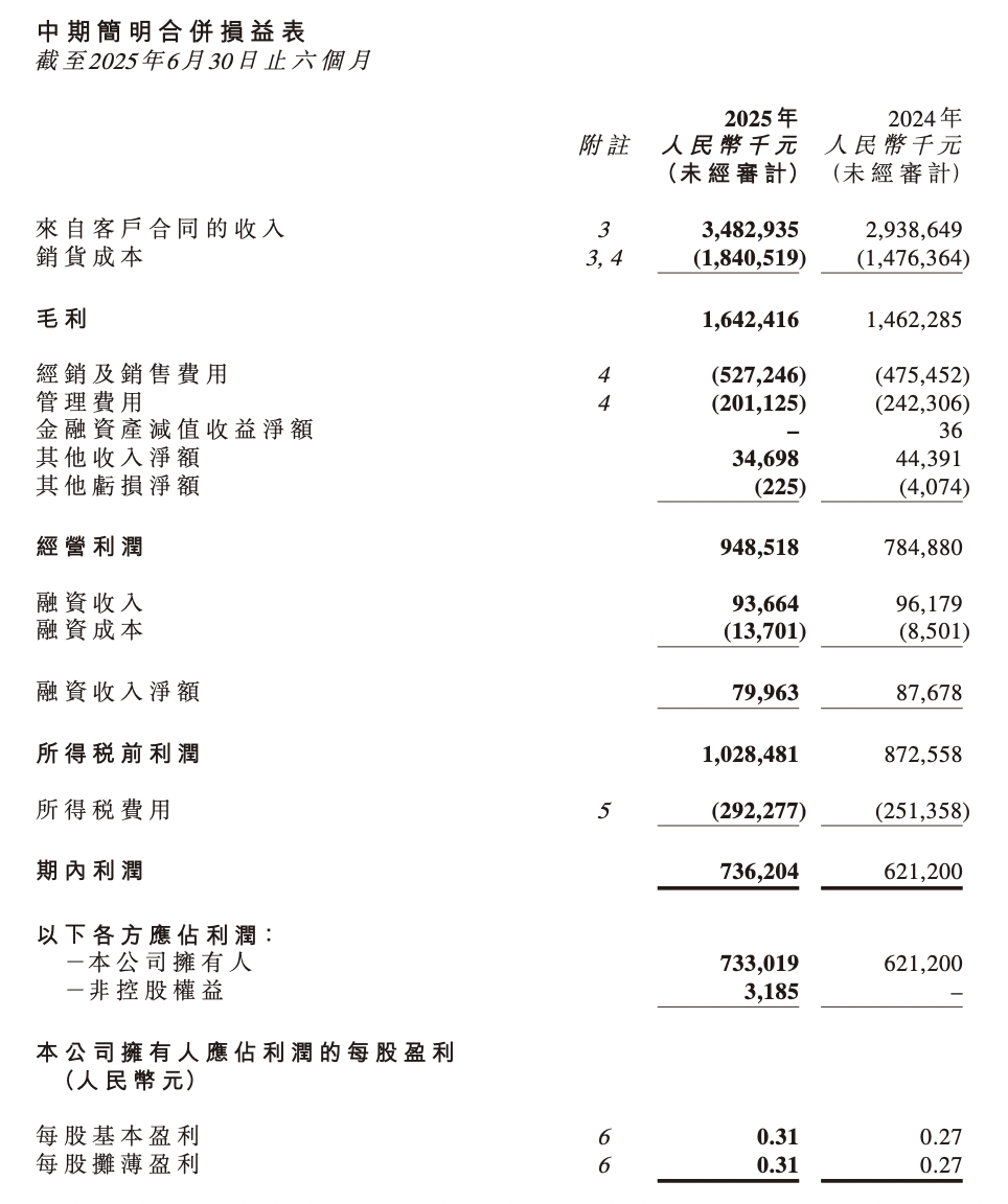 根据公告,公司实现总收入为34.83亿元,同比增长18.5%;归母净利润为7.33亿元,同比增长18%。