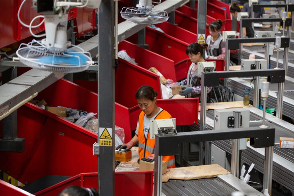 ▲图为江苏省南通市工作人员在顺丰速递智慧快递分拣流水线上作业。(新华社)
