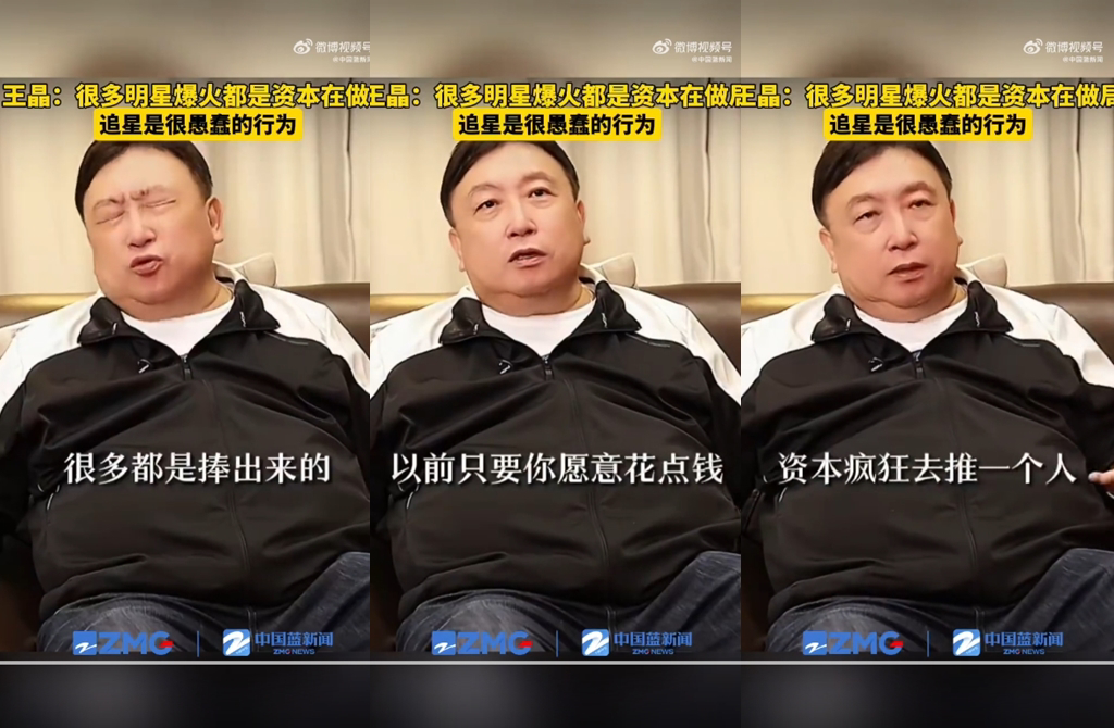 王晶最近受访表示,认为追星很愚蠢,因为明星“都是捧出来的”,言下之意是不见得有实力或让人值得去做这件事,他指出不只现在,以前也是,过去只要愿意花点钱、砸点资本,就可以让一个人从没没无闻到街头巷尾都知道他的名字。