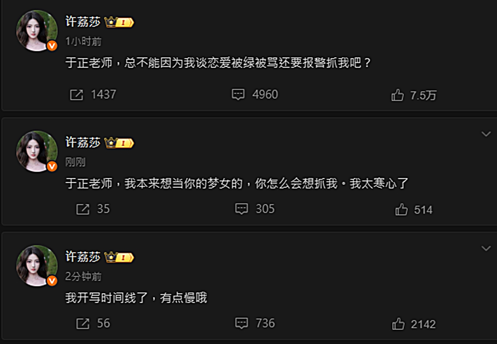 ▲许荔莎回应于正。 (图/翻摄自微博)