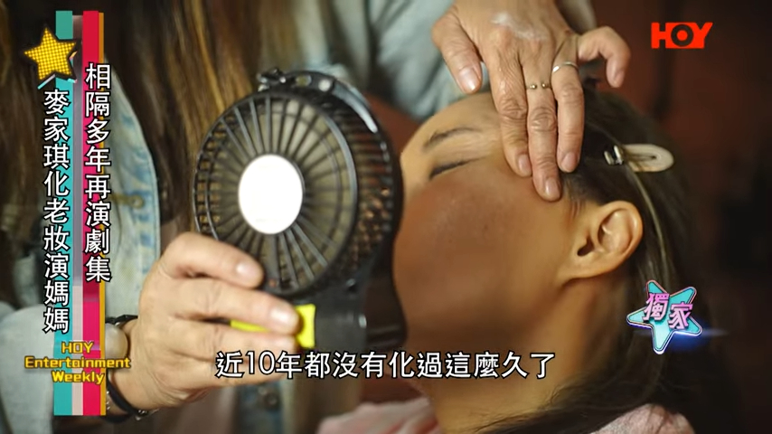 刚满50岁的麦家琪今次在HOY TV新剧《我爱九龙城》饰演40岁的岑丽香的妈咪,阔别屏幕近7年的麦家琪,为了加强说服力专登化老妆(为了更符合角色,特意化了显老的妆容),单是胶水都搽了六层,前后花四、五个钟去化老妆:“近10年都未试过化妆化咁耐,我都好耐冇喺香港拍剧,之前都有做过妈妈角色,但系未试过咁嘅状态,所以觉得好得意。 本来我系用尽方法去keep好啲皮肤,又将自己啲白头发变黑,又用尽方法keep住55KG,点知出到嚟变咗做一个阿婆,点解呢个世界永远都系咁样?”(“我近十年来都没试过化妆化这么久,我也很久没在香港拍电视剧了。以前也演过妈妈的角色,但从来没试过需要化老妆这种情况,所以觉得很有趣。我本来用尽方法保养好皮肤,又把白头发染黑,还想尽办法保持55公斤的体重,谁知道化妆后出来变成了一个老太太。为什么这个世界总是这样事与愿违呢?”)