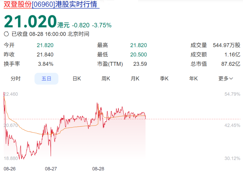 不过28日即出现回调,股价报收于21.02港元/股,总市值87.62亿港元,三日累计涨幅44.87%。