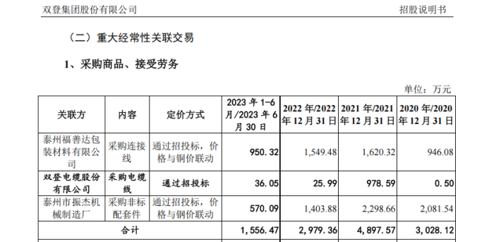 但附录会计师报告显示,这三年与福善达、双登电缆两方的交易金额就与上述数值一致,双登天鹏的交易数据竟“凭空消失”。