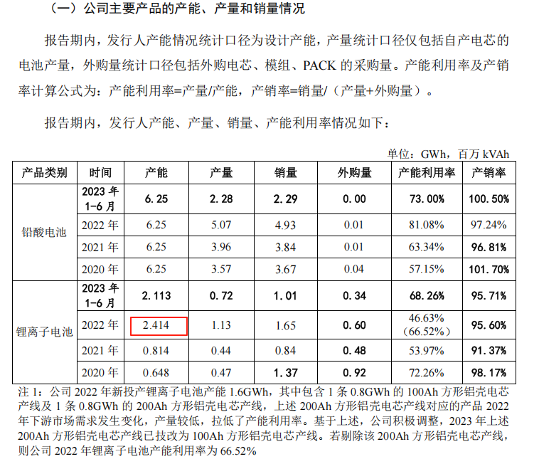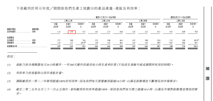 其二,关键经营数据大幅“缩水”?关于2022年锂离子电池产能,A股招股书披露为2.41GWh,港股版则调整为1.58GWh,缩水超34%。公司给出的理由是“按各机台16小时/天、360天/年的最优小时产出率计算”。