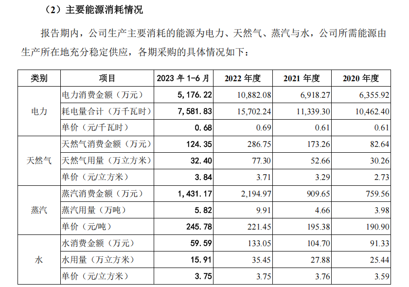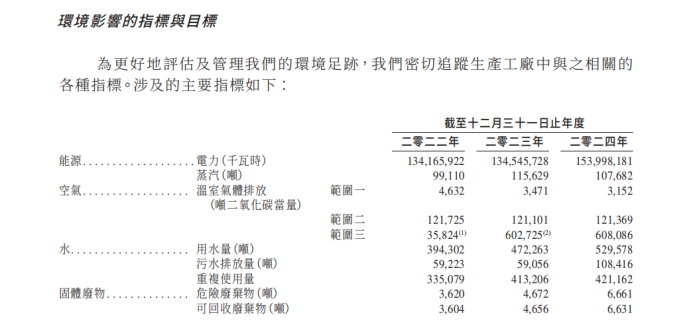 能耗方面,2022年用电量在A股招股书中为1.57亿千瓦时,用水量披露35.45万吨;港股版则为1.34亿千瓦时和39.43万吨,相差17.2%及11.2%。